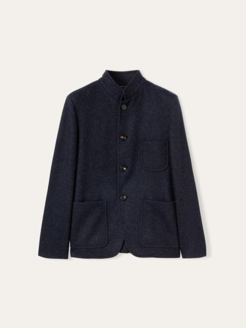 A symphony of nature unfolds with this contemporary interpretation of the Spagna sweater jacket, defined by an upright collar and traditional tailoring. Almost entirely unlined, it is beautifully crafted from double cashmere Jersey Novalis, our iconic lightweight yet warm, naturally stretchy fabric. Embodying Loro Piana's commitment to unparalleled textile quality, it gently embraces the wearer. With its much more fitted line, it transcends the seasons with timeless elegance. Product details Upright band collar, a detail borrowed from the Spagna jacket Horn buttons and suede top buttonhole Large patch pockets Composition: 100% Cashmere Model wears an IT 36 Model measures: height 5′ 9″/ 175cm, bust 31.1″/ 79cm, waist 23.2″/ 59cm, hips 33.9″/ 86cm. Made in Italy Product code: FAN9004