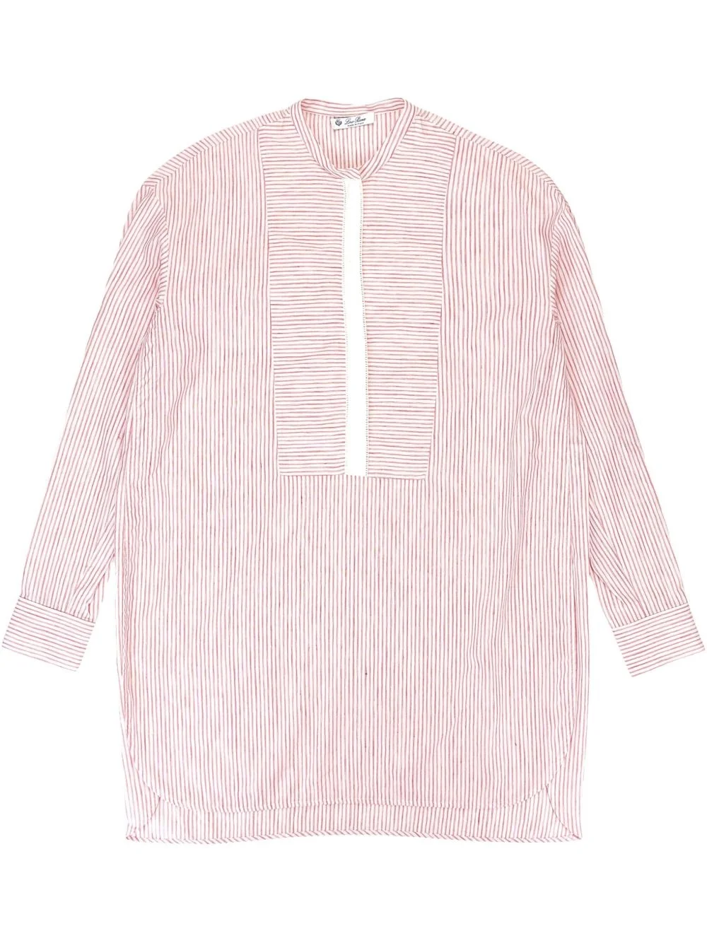 mock-neck striped shirt Highlights - Pink - Concealed front button fastening - Long sleeves - Buttoned cuffs Made in Italy Composition Linen/Flax 100%