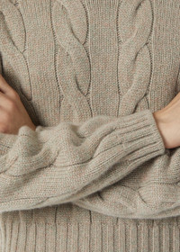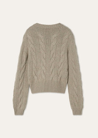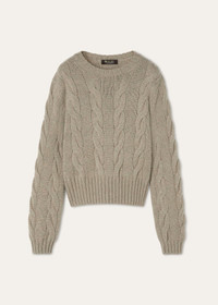 Cropped crewneck made from Coarsehair baby cashmere melange yarn. The weave is enhanced by an extremely soft, fluffy textured knit pattern, accentuating the cashmere’s naturally light weight. This flowing, cozy style is defined by a boxy cut. Product details Ribbed cuffs and hemComposition: 100% Baby Cashmere Made in Italy Product code: FAN1644
