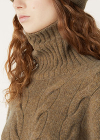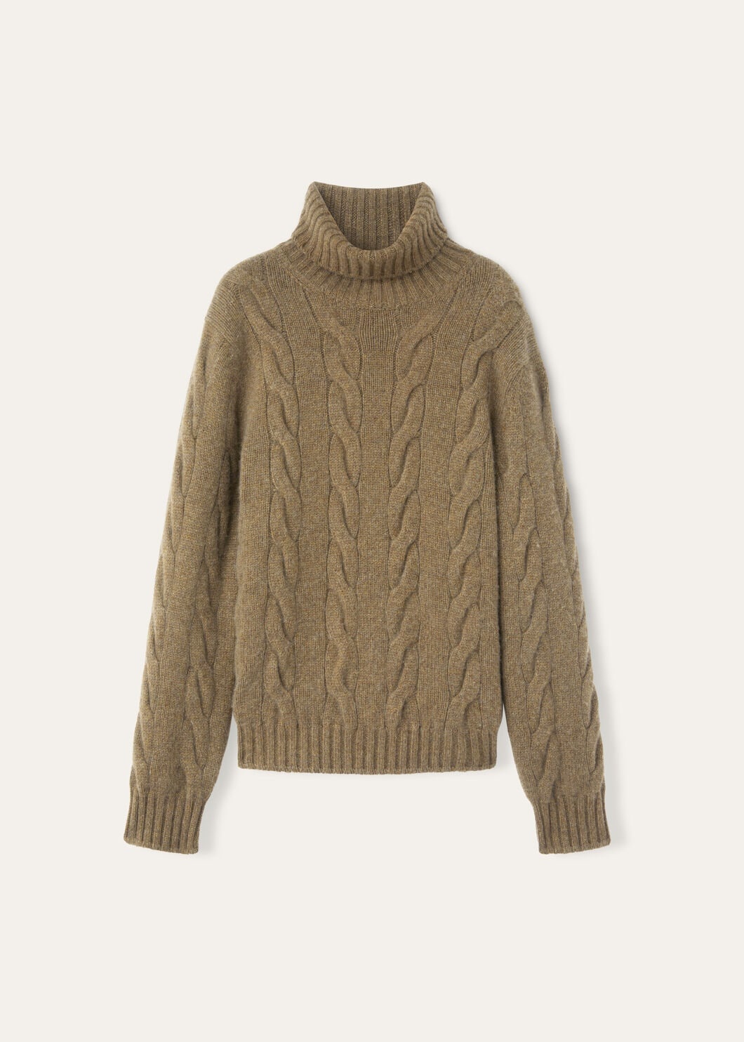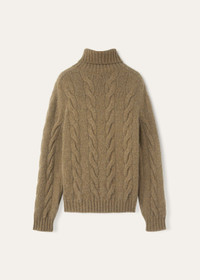 A delicate interplay between strength and delicacy, the Napier turtleneck choreographs an exquisite pas de deux. A masterpiece of sumptuous texture, this sweater drapes the figure in rich melange Baby Coarsehair®, its classic hip-grazing silhouette lavishly worked in an alternating pattern of flat ribs and cables that add three-dimensional depth to the full, airy yarn. The result is an exquisitely enveloping knit. Product details Rib-knit cuffs and hem Composition: 100% Baby Cashmere Made in Italy Product code: FAO5803