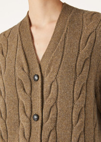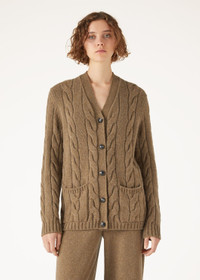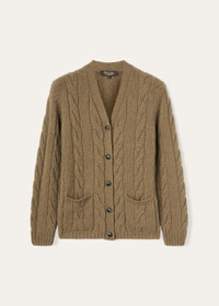 The breathtaking beauty of New Zealand’s natural landscape is embodied in an extremely luxurious knitwear selection. The Napier Cardigan is enhanced with a sumptuous weave that features flat and cable-knit ribbing for a full-bodied, three-dimensional appearance. Crafted from fluffy, melange Coarsehair® baby cashmere that feels pleasantly soft to the touch, it can also be worn as an overshirt, thanks to its cozy, loose fit. Product details Plunging V-neck trimmed with flat ribbing Front closure with leather buttons Patch pockets Ribbed cuffs and hem Composition: 100% Cashmere Model wears an IT L Model measures: height 5′ 10″/ 179cm, bust 32.3″/ 82cm, waist 23.6″/ 60cm, hips 34.6″/ 88cm. Made in Italy Product code: FAN4027