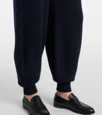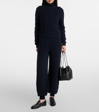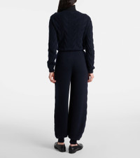 Product Details - Material: 100% cashmere - Care instructions: hand wash - Made in Italy - Designer color name: Blue Navy - Item color: blue - Trim: 80% cashmere, 14% nylon, 6% elastane - Details: 77% cashmere, 16% nylon, 7% elastane - Elasticated waistband - Elasticated ankle cuffs - Item number: P01081839 Size & Fit - True to size - Elasticated waist - Stretchy fabric - Tapered leg - High-waisted - The model seen in the picture is 178cm-5'10" and wearing a size IT 40