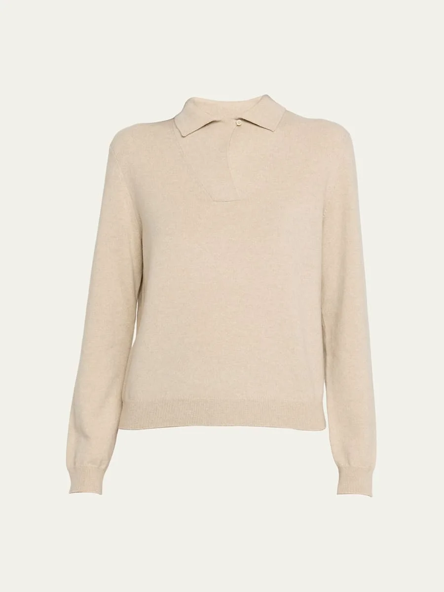 Spun from ultra-fine Coarsehair® baby cashmere, the Loro Piana "Napier Firefly" sweater embodies artisanal craftsmanship and enduring comfort From the 100th anniversary capsule collection Polo collar; one-button overlay closure Long sleeves Pullover style Relaxed fit Cashmere/polyester Dry clean Made in Italy Online Inquiries: BGS21_BB0PA| Store Inquiries: #5400214