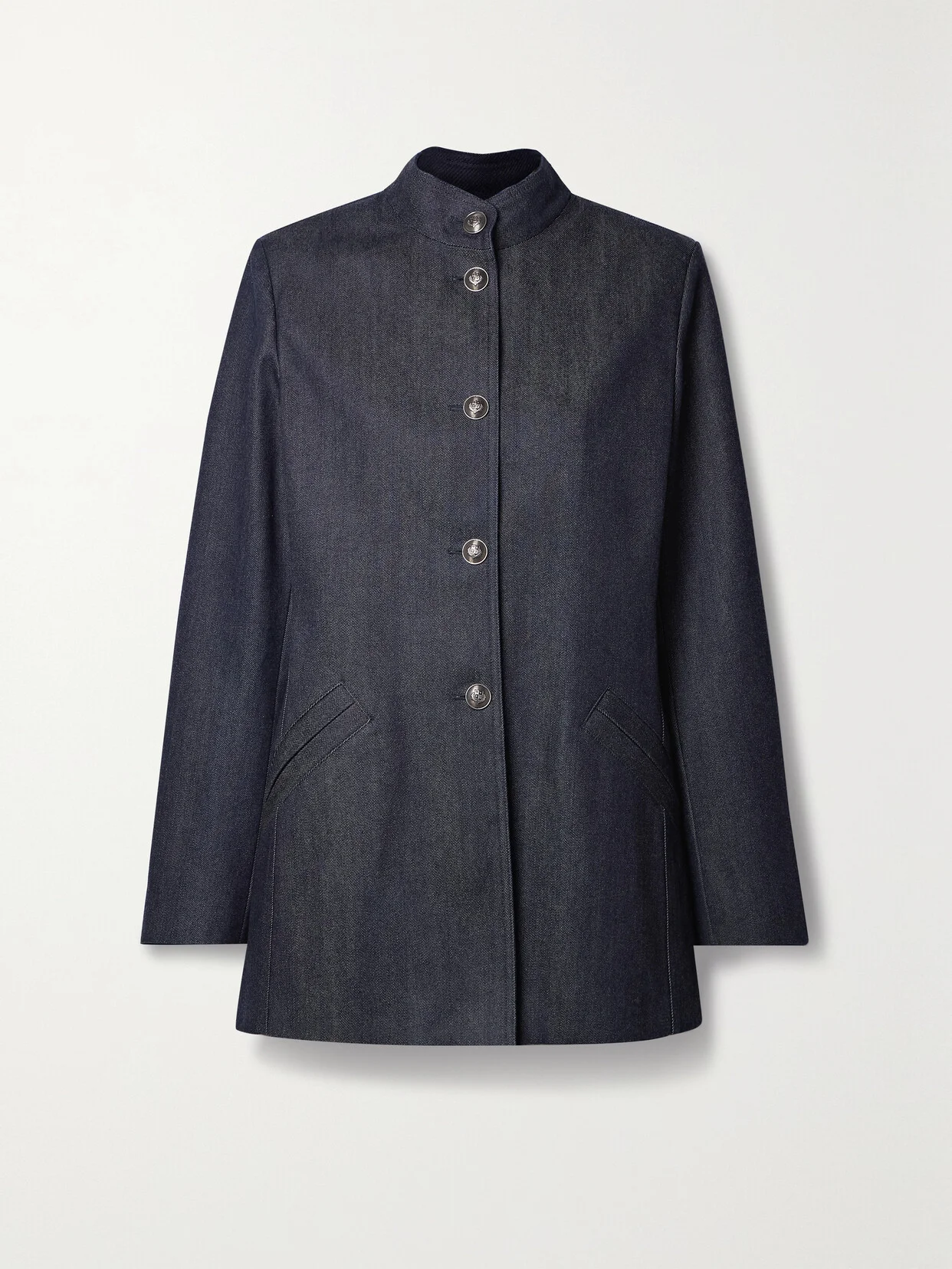 Loro Piana's 'Nathaniel' jacket is made from denim blended with cotton and cashmere for a soft handle that still maintains its structure. It has a stand collar and silver-tone buttons etched with the brand's crest. The twill lining allows for smooth layering.