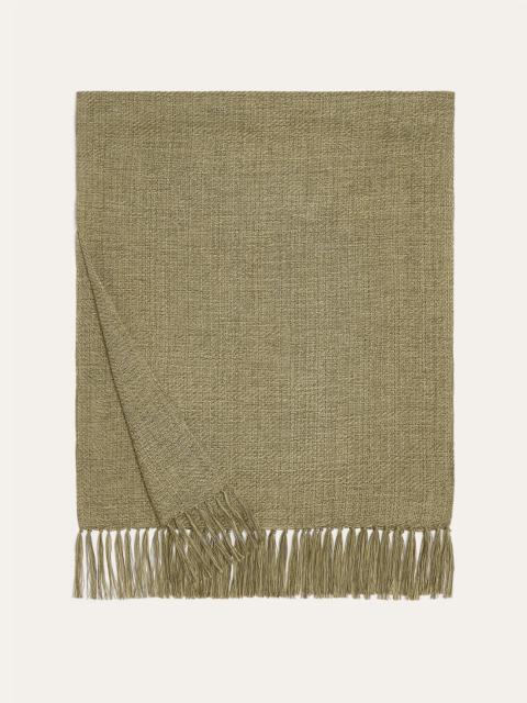 The Natte Tweed scarf is artisanally woven on the loom from a precious blend of silk and linen, creating a refined look and feel. Once interlaced, the two yarns cast a unique melange effect with subtle nuances in color. For added movement, the sides are decorated with a hand-knotted fringed trim. Product details Hand-knotted fringes on short sides Melange yarn Composition: 55% Silk, 45% Linen Product code: FAN9144