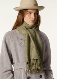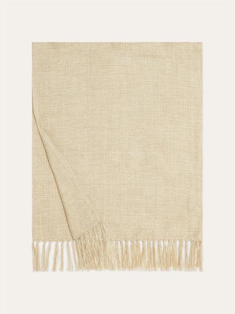 The Natte Tweed scarf is artisanally woven on the loom from a precious blend of silk and linen, creating a refined look and feel. Once interlaced, the two yarns cast a unique melange effect with subtle nuances in color. For added movement, the sides are decorated with a hand-knotted fringed trim. Product details Hand-knotted fringes on short sides Melange yarn Composition: 55% Silk, 45% Linen Product code: FAN9144