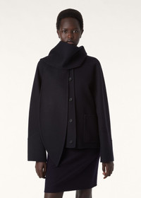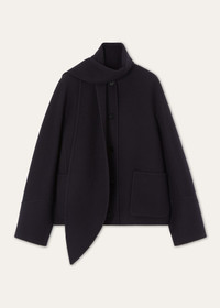 Softly cut for a relaxed shape, the Blaney blouson is designed with a detachable scarf to cast a subtle layered effect. It is woven in two layers of Cashmere using the double construction technique whereby the two fabrics are joined a mano from the inside. Artfully placed seams trace a delicate motif along the sleeves and yoke, lending a polished finishing note. Product details Round neck with removable shawl scarf Two patch pockets on the front Horn button fastening Unlined Regular fit Composition: 100% Cashmere Made in Italy Product code: FAP7136