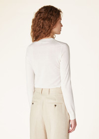 The Piuma crewneck is the perfect style to wear under a jacket, making it a must-have wardrobe staple. It is lightweight without sacrificing the distinctive, luxurious allure of the extremely fine, soft cashmere fabric, while a gossamer weave and highly comfortable fit are its standout features. Ideal for experimenting with layering and color during the spring months. Product details Ribbed collar, cuffs and hemComposition: 100% Cashmere Model wears an IT 40 Model measures: height 5′ 11″/ 180cm, bust 32.7″/ 83cm, waist 24.0″/ 61cm, hips 35.0″/ 89cm. Made in Italy Product code: FAM9049