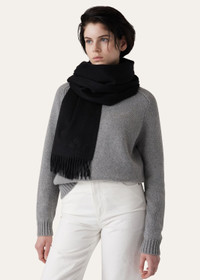 Classic cashmere stole with exclusive Loro Piana “frisson” finish, which gives the fabric sheen and adds luminosity to the colours. Ideal worn as a wide scarf wrapped softly round the neck or as a shrug. Product details Fringing on two sides Size: 200 x 75 cm Composition: 100% cashmere Made in Italy Product code: FAO3765