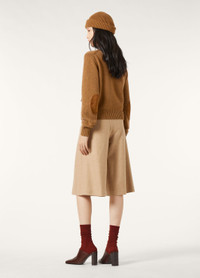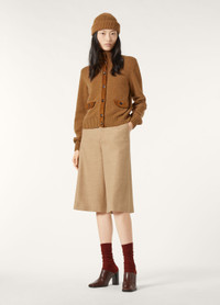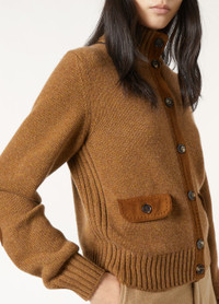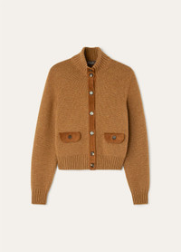 Gathered just once from each infant Hircus goat, Baby Cashmere embodies nature's fleeting perfection—a cloud-soft whisper of unparalleled luxury. This loose-fitting bomber jacket drapes the body in this special yarn, while the high neck and front button-up create a cozy cocoon. The refined tonal suede detailing takes this piece to a new level of understated glamour. Product details Ribbed stand-up collar Flap pockets with button Ribbed cuffs Long sleeves Button closure with horn buttons Suede inserts at closure, pocket flaps and elbow Regular fit Ribbed bottom Plain stitch Gauge 5 Composition: 100% Baby Cashmere Specific Features: 100% Suede Made in Italy Product code: FAO9817