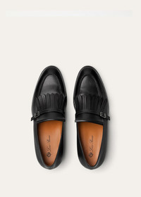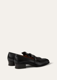 An elevated take on a traditional style, the Pennan loafer has an elegantly tapered shape with defined fringing, neatly secured by a buckle. It is crafted from Box Prestige calfskin with a firm structure and naturally lustrous finish. A small heel lends a sense of poised lift. Product details Leather lining Logo-embossed insole Fringe trim Square buckle Heel height: 3.5 cm / 1.4" Composition: 100% Calfskin Made in Italy Product code: FAQ2445