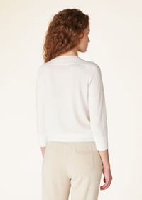 Crewneck made from plain-knit cashmere. This lightweight, versatile style is flowing and comfortable. Featuring three-quarter length sleeves, it is perfect under a jacket in casual looks. Product details Ribbed collar, cuffs and hemComposition: 100% Cashmere Model wears an IT 40 Model measures: height 5′ 11″/ 180cm, bust 32.7″/ 83cm, waist 24.0″/ 61cm, hips 35.0″/ 89cm. Made in Italy Product code: FAM9050