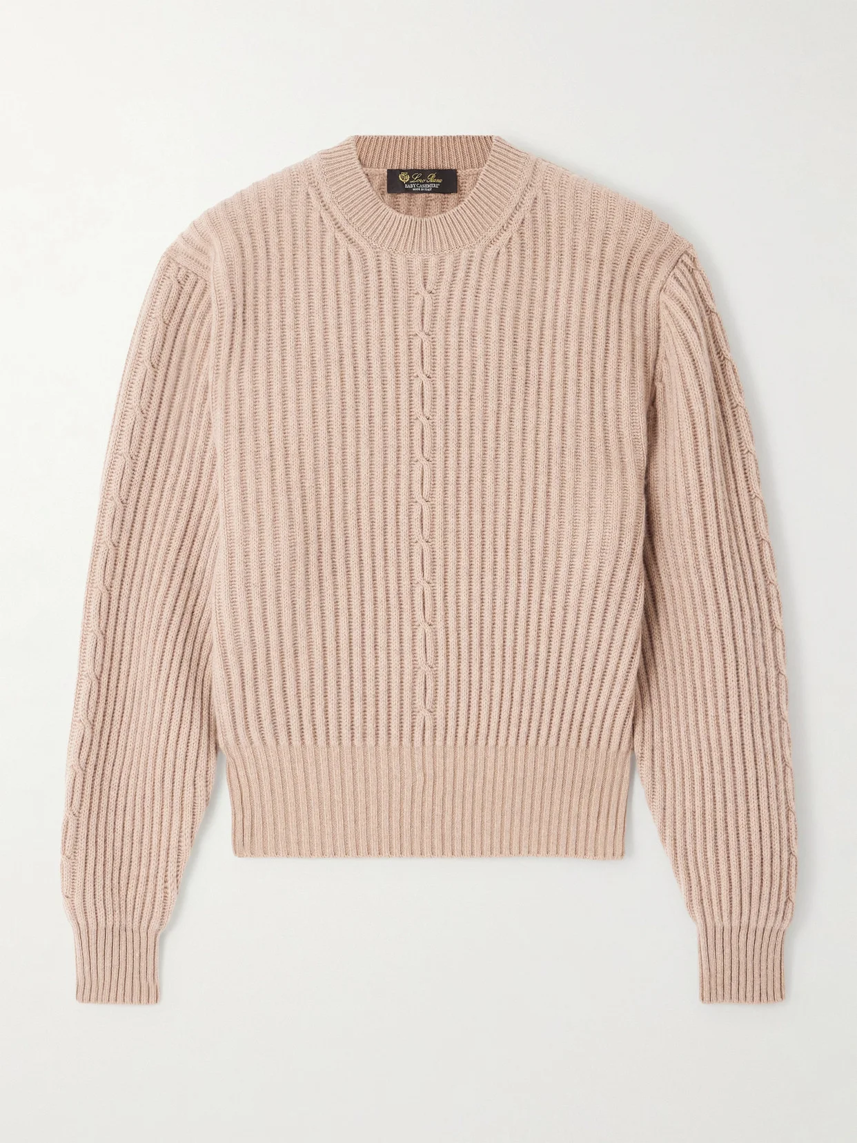 Loro Piana's sweater is made from luxurious baby cashmere that's dyed with plant-based pigments for a warm 'Dusk Rose' shade. It's been rib-knitted in Italy for a mid-weight, stretchy handle and has cable motifs along the chest and sleeves.