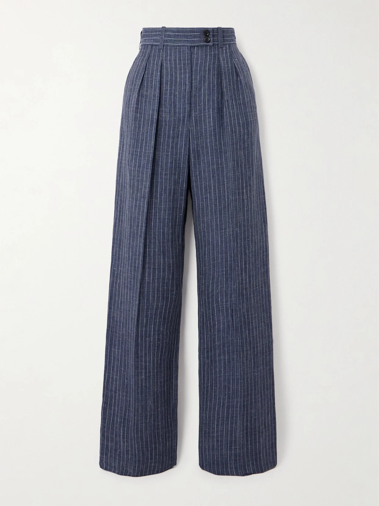 Pleated Striped Linen-blend Straight-leg Pants