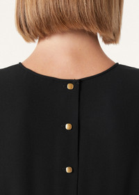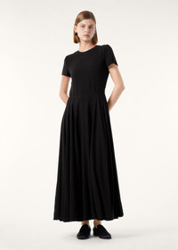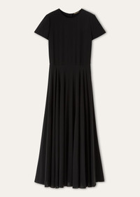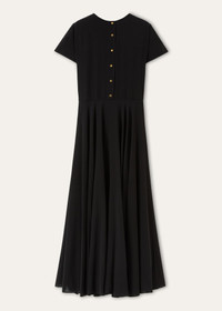 With its luminous shine, the Poline dress moves with a sense of fluidity and grace. Its neat calf-grazing silhouette is cut from sable crepe silk, revealing a refined grainy texture with a subtle flecked finish that plays softly with the light. The clean waist seam elegantly defines the line before cascading into a full flowing skirt. Product details Shirt collar Two chest pockets with flap and button; two lower pockets with flap and button and side-entry pockets; two inner side-entry pockets with snap buttons Cuffs with horn button Horn button front fastening Leather undercollar and leather inserts at pocket flaps Lined in Silk Georgette Regular fit Melange fabric Composition: 100% Silk Made in Italy Product code: FAP7652
