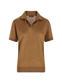 LORO PIANA 'WAITAKI' POLO SHIRT IN BROWN 'WISH®' WOOL WITH BUTTONLESS COLLAR, SHORT SLEEVES, CONTRAST DETAILS, RIBBED TRIMS, STRAIGHT HEM. PRODUCT INFO PRODUCT CODE FAN4593E0DZ COMPOSITION: 100% WOOL SIZE AND FIT: REGULAR FIT MADE IN: ITALY