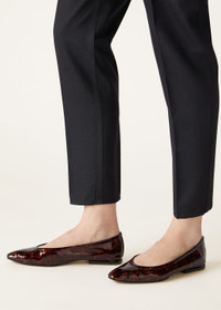 Discover the epitome of refined city style with these exquisite ballet flats. The half-sacchetto construction ensures unparalleled flexibility and ease on the front of the foot, while the high-gloss patent calfskin and matching tortoiseshell heel exude sophistication with every step. Transition smoothly from day to night wearing these versatile ballet flats with office attire or polished weekend looks. Product details Lined in nappa lambskin Black leather insole Insert heel Transparent tortoiseshell heel Composition: 100% Calfskin Lining: 100% Nappa Lambskin Sole: 100% Leather Made in Italy Product Code: FAO6133