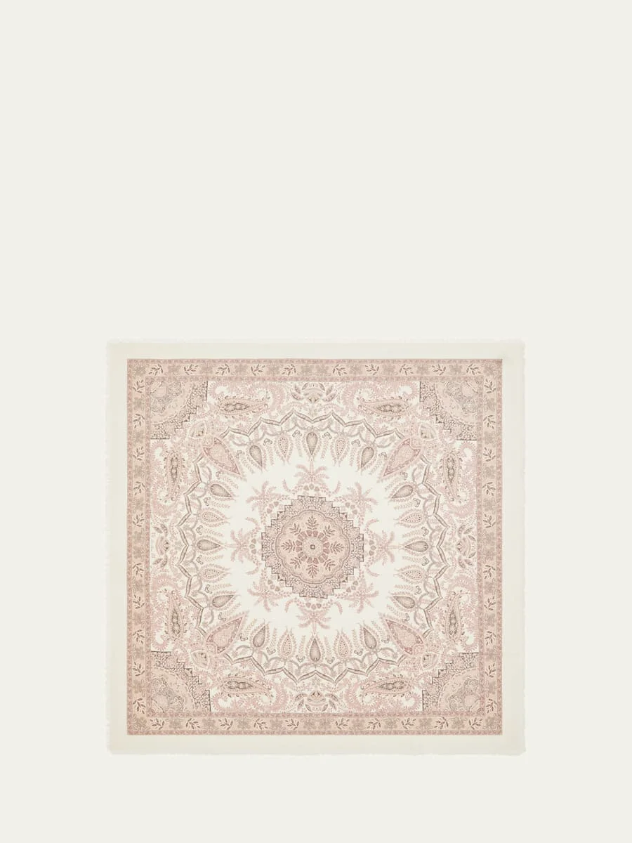 Inspired by the beauty of Indian tapestry, this jacquardwoven shawl from Loro Piana unfurls with a paisley and floral motif. Approx. 57" Sq. Fringe trim May be styled multiple ways Cashmere/silk Dry clean Made in Italy