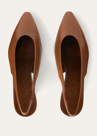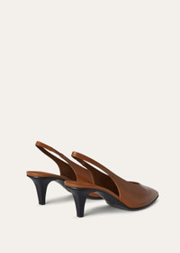 These slingbacks are part of the Rebecca line, defined by soft contours and pointy toes. They are crafted from calfskin with a unique finish, making them extremely soft while preserving the natural qualities of the leather. Their slightly lived-in look adds a touch of sophisticated elegance, while their versatile, feminine style makes them perfect in casual-chic outfits. Product details Insoles trimmed in color-matched leather Black leather soles Heel Height: 5.5 cm (2.2”) Composition: 100% Calfskin Soles: 100% Leather Made in Italy Product code: FAN3740