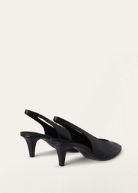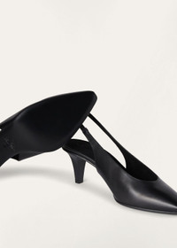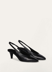 These slingbacks are part of the Rebecca line, defined by soft contours and pointy toes. They are crafted from calfskin with a unique finish, making them extremely soft while preserving the natural qualities of the leather. Their slightly lived-in look adds a touch of sophisticated elegance, while their versatile, feminine style makes them perfect in casual-chic outfits. Product details Insoles trimmed in color-matched leather Black leather soles Heel Height: 5.5 cm (2.2”) Composition: 100% Calfskin Soles: 100% Leather Made in Italy Product code: FAN3740