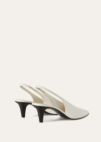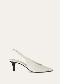 These slingbacks are part of the Rebecca line, defined by soft contours and pointy toes. They are crafted from calfskin with a unique finish, making them extremely soft while preserving the natural qualities of the leather. Their slightly lived-in look adds a touch of sophisticated elegance, while their versatile, feminine style makes them perfect in casual-chic outfits. Product details Insoles trimmed in color-matched leather Black leather soles Heel Height: 5.5 cm (2.2”) Composition: 100% Calfskin Soles: 100% Leather Made in Italy Product code: FAN3740