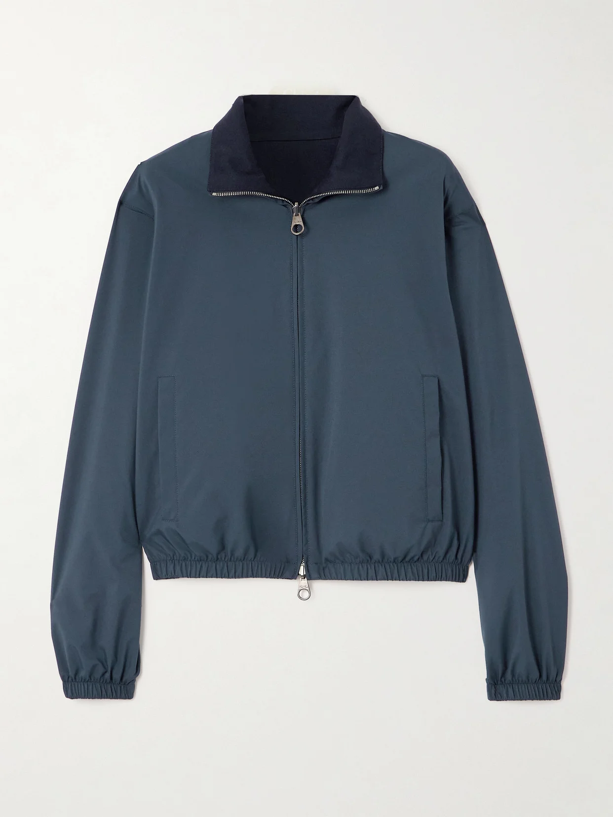 Loro Piana's jacket is reversible, so you can wear it with the petrol shell or navy cashmere side facing out. The versatile style is designed for a relaxed fit with elasticated trims and slant pockets. The label's signature Storm System® technology will keep you dry and warm.