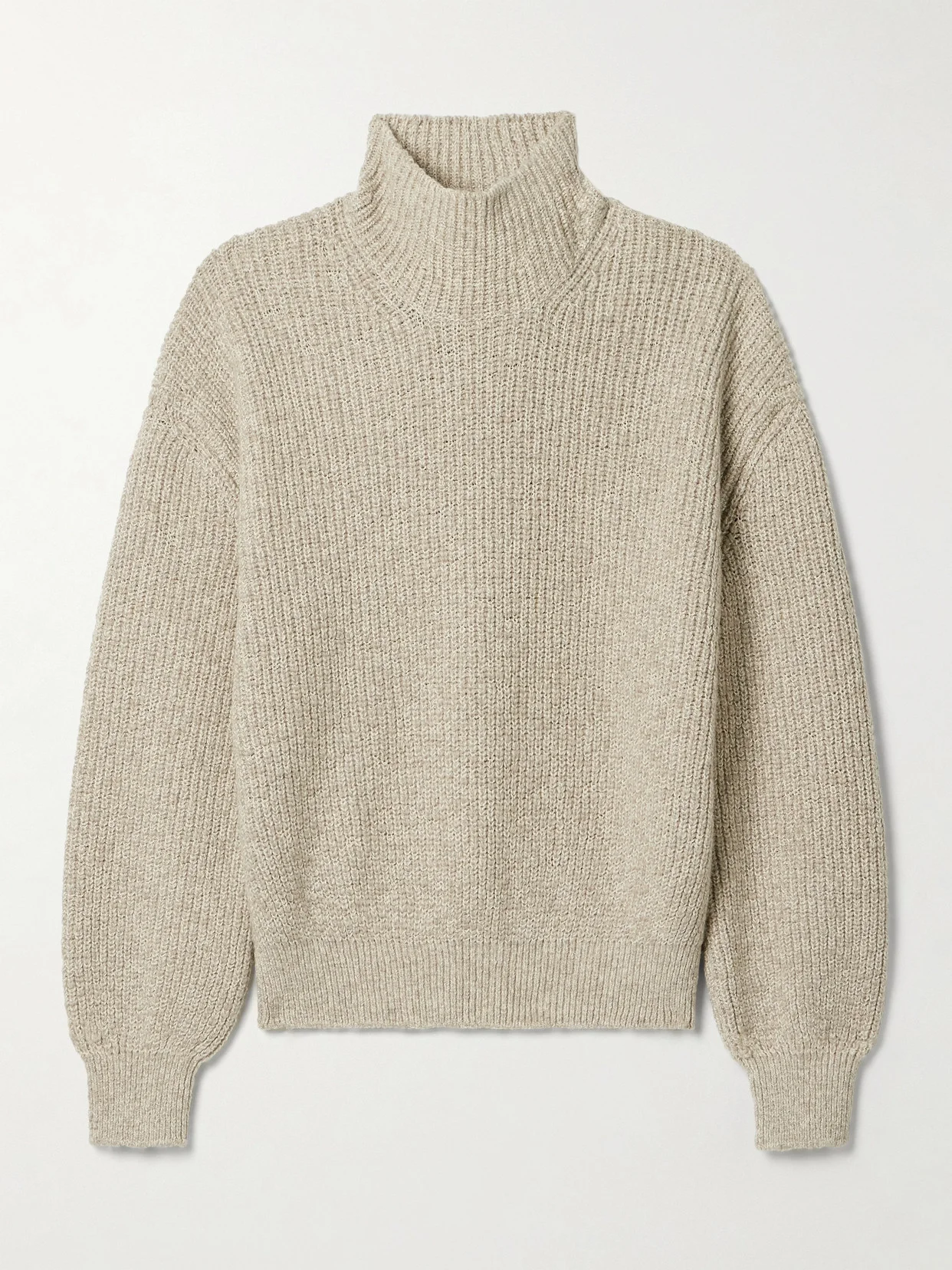 Loro Piana's signature cashmere boasts exceptional softness and quality. Designed in Italy with a tonal melange of beige and off-white shades, this turtleneck sweater has a relaxed fit enhanced by dropped shoulders and ribbed trims.