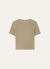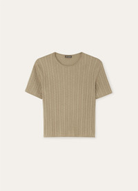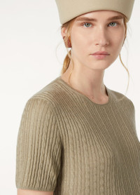 In a delicate dance of softness and strength, the Rimella crewneck combines the finest materials with intricate craftsmanship. With its clean minimalist lines and intricate cable-knit texture, the short-sleeved sweater features a high neckline and fitted cut. Crafted from a luxurious blend of cashmere and silk yarns, this piece is the perfect companion to the cardigan in the same range, making for a statement ensemble. Product details Rib-knit border on hem and sleeves Composition: 70% Cashmere, 30% Silk Model wears an IT 40 Model measures: height 5′ 10″/ 178cm, bust 33.5″/ 85cm, waist 24.8″/ 63cm, hips 35.8″/ 91cm, shoes 15.4″/ 39cm. Made in Italy Product code: FAP0699