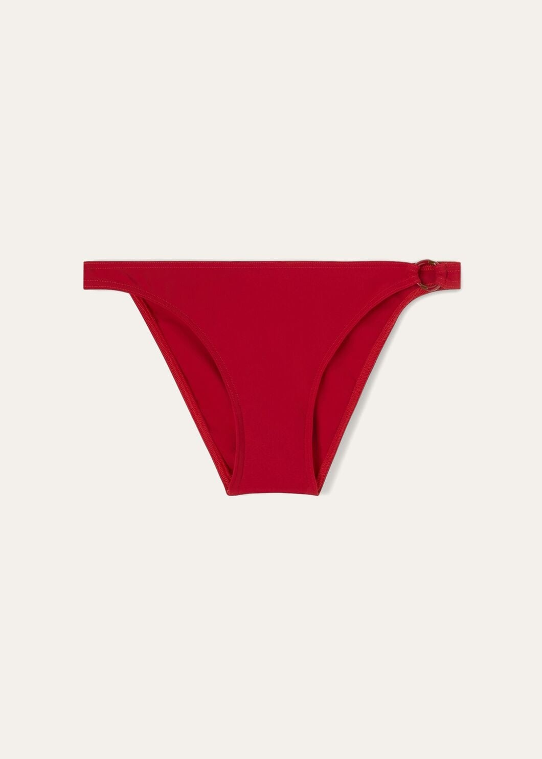 High-cut bikini bottoms made from microfiber jersey. The compact, high-performance fabric is durable and resistant; it perfectly clings to the body, guaranteeing a comfortable fit. It features an enameled-metal eyelet in the shape of a life preserver — one of the collection’s main themes. Product details Composition: 62% Technical Fabric, 38% Elastane Made in Italy Product Code: FAM9135