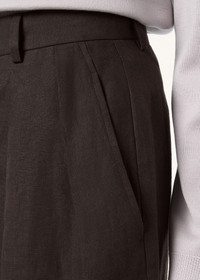 Shaped for a sleek elongated line, these Rodger pants are cut from crisp Tropical Linen, which has been piece-dyed for even coloration. The wide-leg silhouette falls naturally from two soft pleats, with a single pressed crease lending a touch of structured elegance. Product details High-rise waist Straight cut Straight side pockets Zip, hook and button fastening Metal button Belt loops Front pleats Unlined Regular fit Composition: 100% Linen Made in Italy Product code: FAP7724