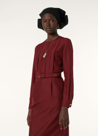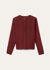 With its innate grace, silk captures the delicate essence of spring's awakening, evoking the gentle whisper of blooming flowers. Cascading plisse pleats transform this lightweight blouse into a masterpiece of subtle movement and refined detail, while the hidden back fastening maintains its pure lines. The long sleeves and clean silhouette bring quiet drama to both tailored separates and evening ensembles. Product details Round collar Shirt cuffs with metal button Long sleeves Hidden button closure on the back Plisse front Regular fit Composition: 100% Silk Product code: FAP0180