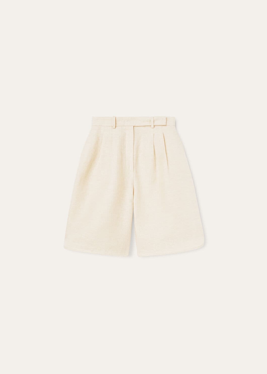 Whispers of color emerge in our new collection, gently evoking the first pale buds of spring. With an off-center hooked waistband and a curved hem that skims the thigh with an elegant drape, these breezy linen shorts offer lightweight comfort on warm days. The flared silhouette is flattering on a variety of frames and allows for complete freedom of movement. Product details Horn buttons Silk-lined pockets Composition: 100% Linen Made in Italy Product Code: FAN7226