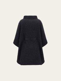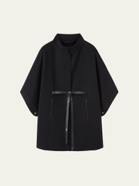 Iconic cape in cashmere double styled with a classic cut. Below hip length. It can be worn with the plonge leather belt to highlight the waist, or without for a softer, more flowing line. Elegant and versatile, ideal with formal looks Loro Piana "Salzburg" double-face cashmere jacket. Approx. measurements: 17"W x 69"L Stand collar; hidden snap front. Half sleeves. Leather belt cinches waist. Side-entry pockets. Relaxed silhouette. Clean only at cleaners specialized in treating leather. Do not iron. Made in Italy. Online Inquiries: BGS21_D2V4U| Store Inquiries: #2153907
