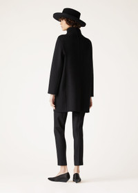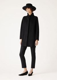 A symphony of sartorial grace, the Scotty coat pays homage to the timeless hallmarks of classic outerwear, while softening the aesthetic with refined details and sleek, feminine lines. Double-layered baby cashmere is meticulously constructed using the double technique to create this exquisitely feminine coat. Invisible seams ensure an impeccable unlined finish that enhances the exquisite workmanship, while kimono sleeves and concealed fastenings culminate in a vision of streamlined refinement. Product details Front central fastening with five concealed press studs, on leather ribbon Bars where the buttons are to fasten the front placket Double trim inside in plonge leather with waxed, raw cut edges Pockets set into the sides, finished with silk twill Composition: 100% Cashmere Specific Features: 100% Lambskin Model wears an IT L Model measures: height 5′ 10″/ 179cm, bust 30.3″/ 77cm, waist 23.2″/ 59cm, hips 34.3″/ 87cm. Product code: FAO3277