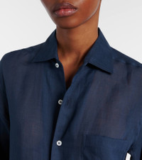 Crafted in Italy from pure ramie, this shirt from Loro Piana offers an effortlessly sophisticated silhouette. The semi-sheer design is complete with a classic collar, patch chest pocket, and buttoned front closure. Product Details - Material: 100% ramie - Care instructions: machine wash at 30 degrees - Made in Italy - Designer color name: Crown Blue - Item color: blue - Closure: buttoned front - Pockets: patch - Collar: classic (Straight point) - Item number: P01060900 Size & Fit - True to size - Semi-sheer - Designed for a loose fit - Non-stretchy fabric - Falls below the hip - The model seen in the picture is 178cm-5'10" and wearing a size IT 40