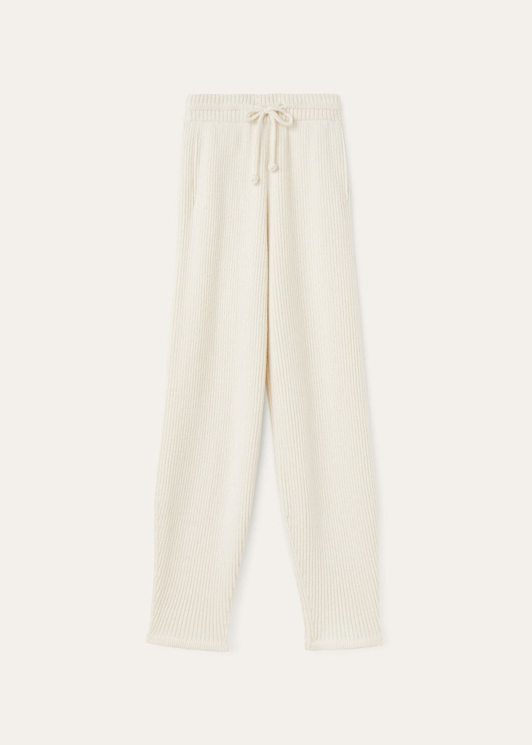 Experience comfort and style with our ribbed pants in a silk and cashmere blend. The regular fit creates a classic silhouette, while diagonal pockets add a touch of functionality. The drawstring waist not only enhances comfort, but also adds a casual, relaxed air to these versatile pants. Product details Diagonal pockets Drawstring at the waist Piping detail on the inner waistband in Kummel color Composition: 60% Cashmere, 40% Silk Model wears an IT L Model measures: height 5' 10.5"/ 179cm, bust 30.3"/ 77cm, waist 23.2"/ 59cm, hips 34.3"/ 87cm. Made in Italy Product Code: FAO2394