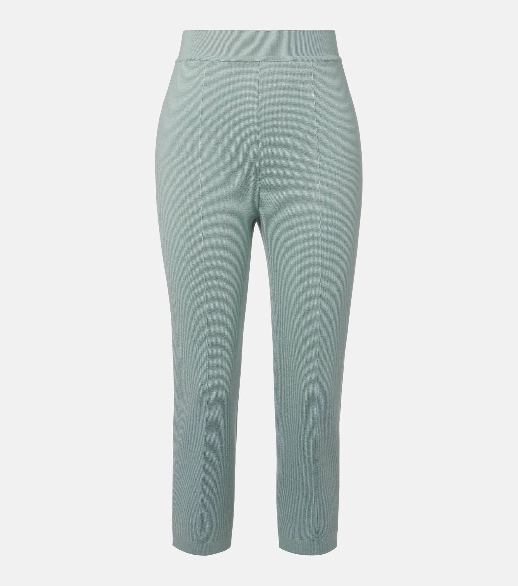 Product Details - Material: 55% silk, 45% cotton - Care instructions: dry clean - Made in Italy - Designer color name: Pearl Cloud - Item color: blue - Trim: 44% silk, 36% cotton, 14% nylon, 6% elastane - Elasticated waistband - Hem: ribbed - High-rise - Item number: P01069273 Size & Fit - True to size - Elasticated waist - Stretchy fabric - Tapered leg - High-waisted - The model seen in the picture is 178cm-5'10" and wearing a size IT 40