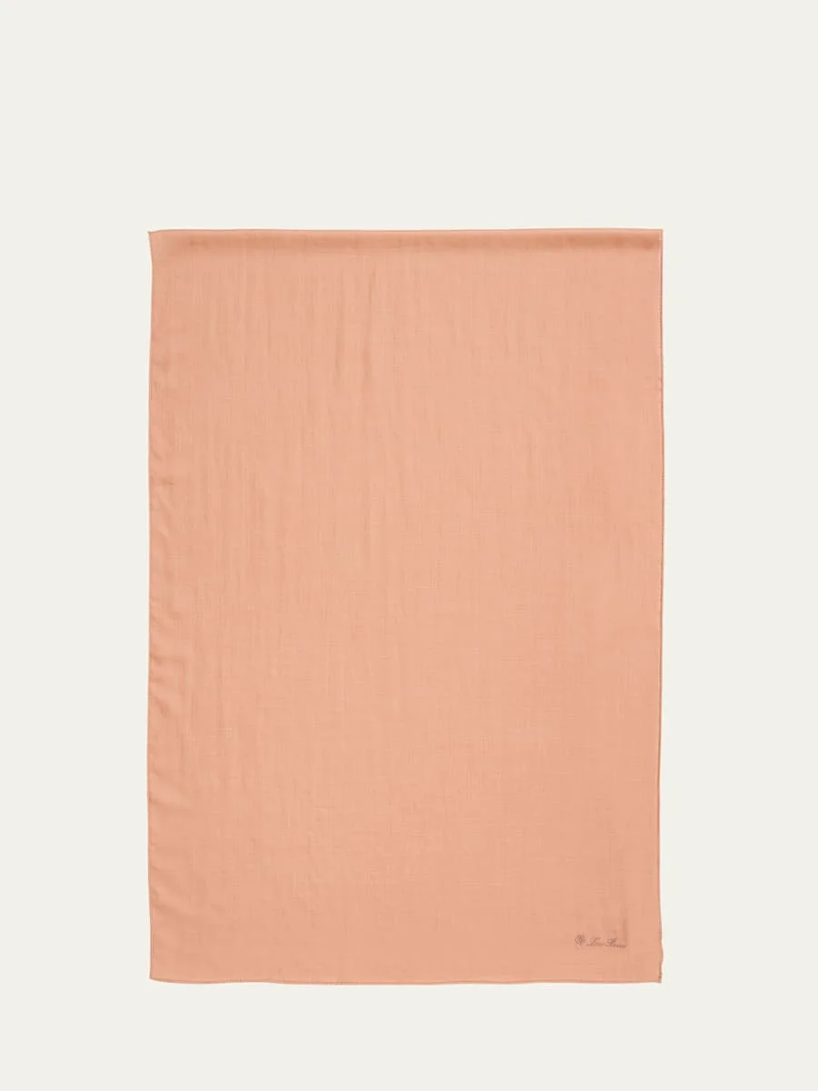Loro Piana "Signature" stole in silk, wool, and cashmere Approx. 18.1"L x 21.2"W Embroidered logo Rolled trim May be styled in multiple ways Item Weight (Lbs.): 0.7 Dry clean Made in Italy Proposition 65 warning for California residents Online Inquiries: BGS21_D5640| Store Inquiries: #4736334