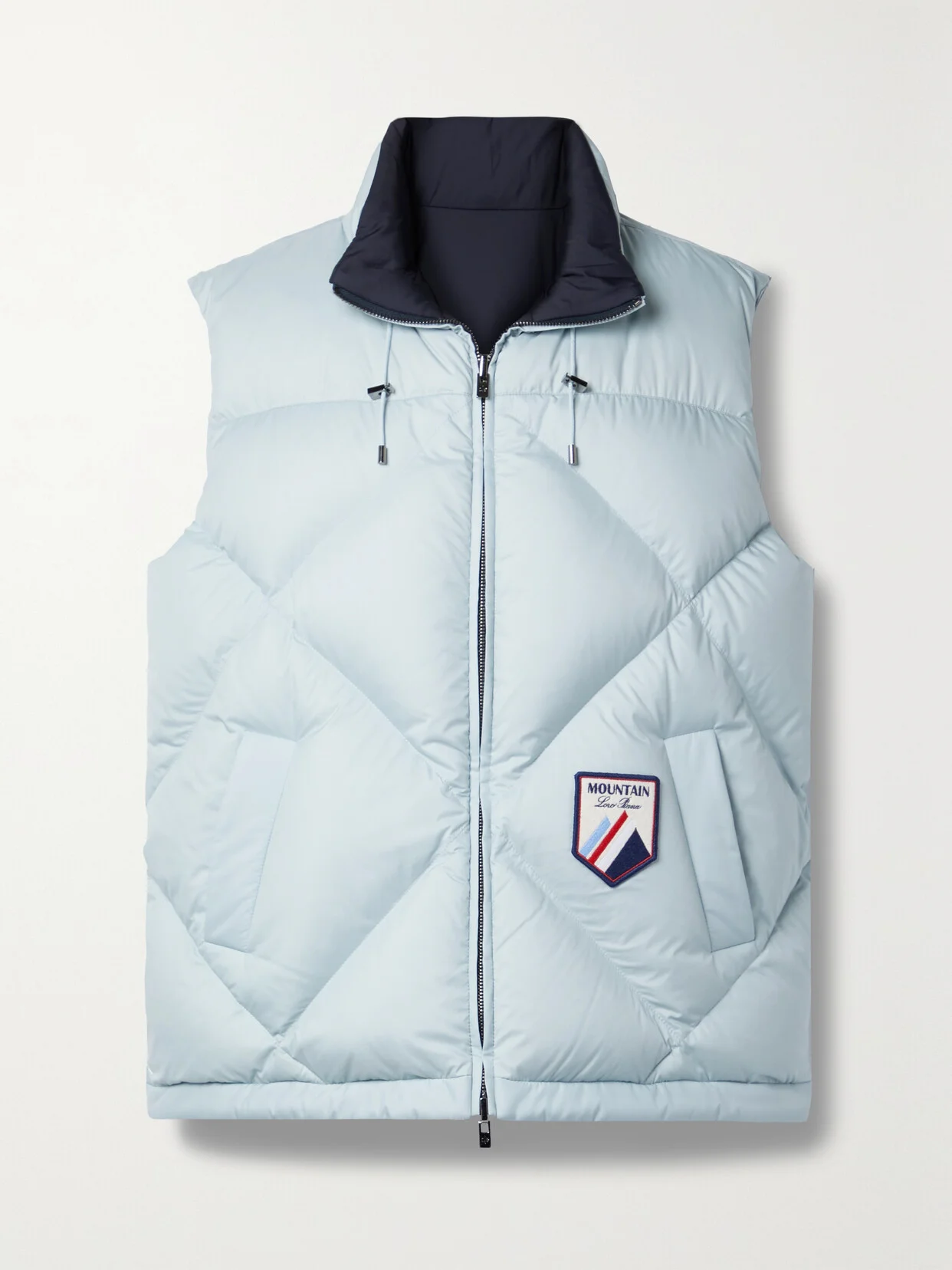 Loro Piana's hooded 'Silas' vest is designed with your next trip to the slopes in mind - note the logo patch appliqued at the front. It's made from smooth shell that's quilted and padded with down for extra insulation. Wear it on the sky-blue or navy side, depending on your outfit.