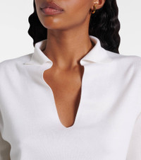 Product Details - Material: 55% silk, 45% cotton - Care instructions: dry clean - Made in Italy - Designer color name: Thrush - Item color: white - Collar: polo collar - Cuff: ribbed - Hem: ribbed - Item number: P01069200 Size & Fit - True to size - Dropped shoulders - Designed for a loose fit - Stretchy fabric - Falls to the hip - The model seen in the picture is 178cm-5'10" and wearing a size IT 40