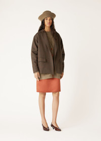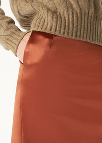 The Silvia skirt sculpts sartorial verses from the finest of threads - every artful line, pleat and contour whispering an enchanting refrain of refined poise. A seamless blend of soft and structured, the classic pencil design is cut from a cashmere-silk blend in a slight A-line silhouette that falls just above the knee. A slit at the back allows for ease of movement, while the concealed side zip is adorned with a logoed hoop pull. Product details Two darts on rear Side slit pockets Composition: 42% Silk, 35% Cashmere, 23% Acetate Lining: 100% Silk Model wears an IT 36 Model measures: height 5′ 9″/ 175cm, bust 28.7″/ 73cm, waist 22.4″/ 57cm, hips 35.0″/ 89cm. Made in Italy Product code: FAO4012