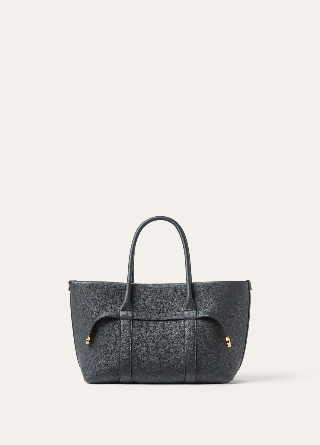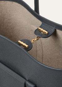 An extension of the iconic Ghiera family, the Ghiera Shopper offers the perfect blend of elegance and functionality for everyday use. Crafted from fine-grained leather, its generous volume makes it ideal for both work and play, offering versatility. The Ghiera ring closure creates a chic 'belt' effect, allowing the bag to be worn open for a more relaxed style or closed for a more sophisticated look. It can be worn over the shoulder or held in the hand for effortless sophistication. Product details Leather handles Detachable inner pouch Decorative clasp Sun Gold metalware finish Leather lining Dimensions: 28 x 19 x 12 cm / 11 x 7.5 x 4.7 in Handle drop: 12.5 cm / 4.9 in Composition: 100% Calfskin Lining: 100% Calfskin Made in Italy Product code: FAO7473