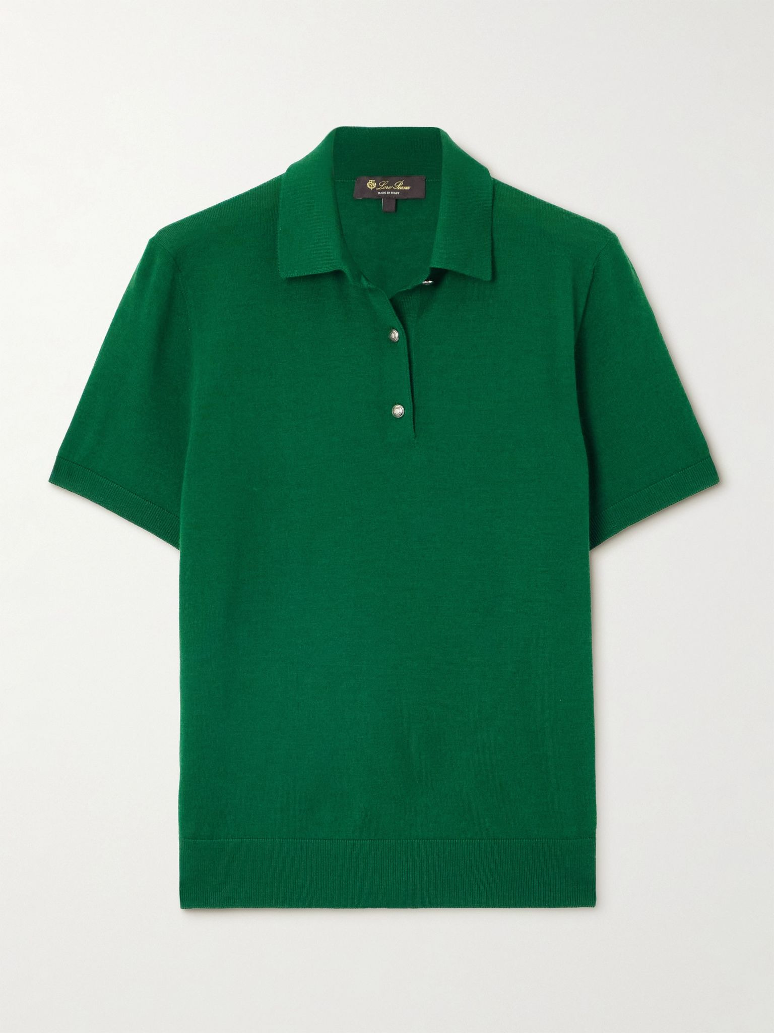 Loro Piana's collections are made using only the finest fabrics. Case in point, this polo shirt is cut from a sumptuous wool, silk and cashmere-blend and finished with ribbed trims. Leave the buttons undone for a more laid-back approach. Size & Fit - Fits true to size, take your normal size - Designed for a slightly loose fit - Lightweight, non-stretchy fabric - Model is 177cm/ 5'10" and is wearing a size Small Model measurements: - Bust: 86cm/ 34" - Waist: 65cm/ 25.5" - Hip: 90cm/ 35.5" Details & Care - Emerald wool, silk and cashmere-blend - Button fastenings along front - 40% wool, 30% silk, 30% cashmere - Dry clean