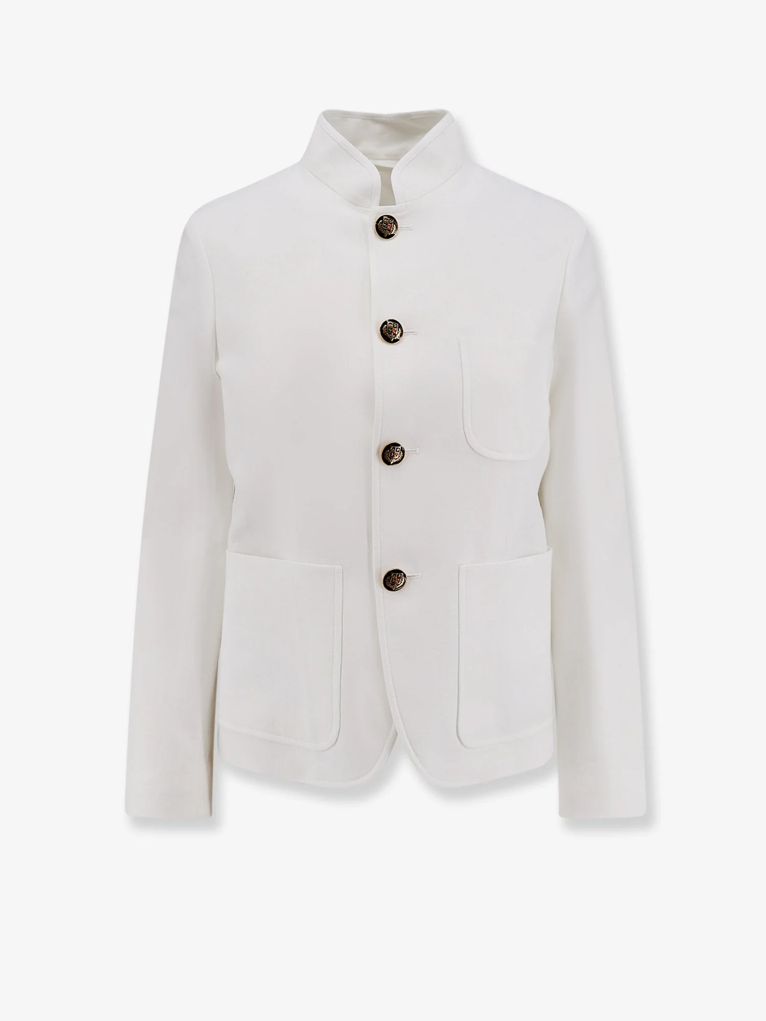 - Single-breasted - Gold metal button closure - Three patch pockets on the front - Long, lined sleeves - Made in Italy - 100% linen - SKU: FAQ69061000 - Made in: ITALIA