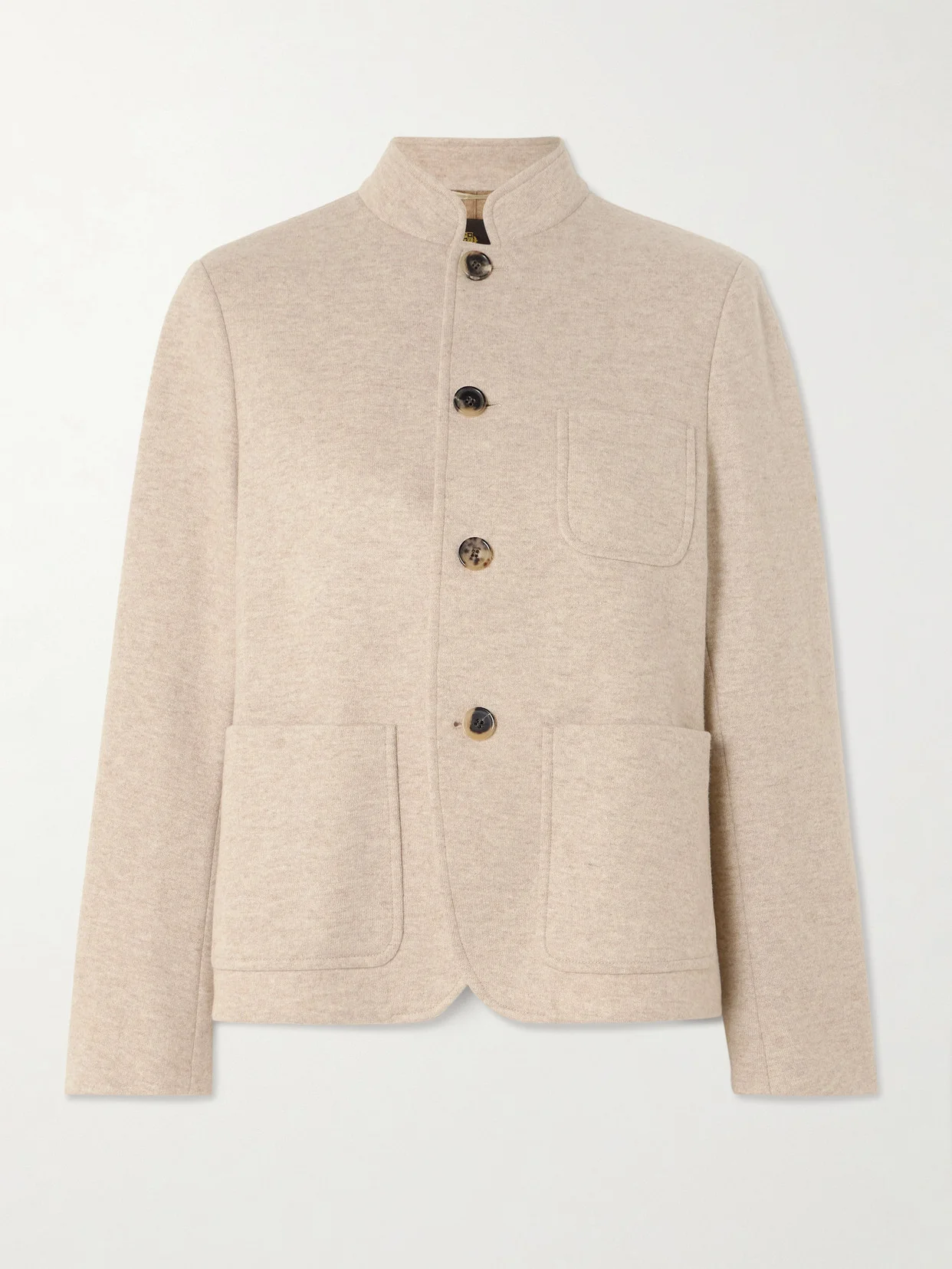 Loro Piana's 'Mini Spagna' jacket has a mandarin collar that gives it a chic, retro feel. It's made from incredibly soft cashmere-blend and decorated with a trio of pockets. Wear yours as a set with the coordinating pants.