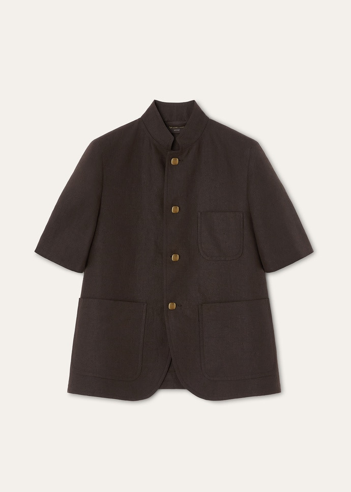 The iconic Spagna jacket, first introduced in 1998, is reworked with a more fitted silhouette for a female line. Inspired by a Spanish officer’s uniform, it is characterized by its standing collar, buttonless cuffs and double patch pockets. Its Tropical Linen cloth is produced by the masters at Solbiati, part of the Maison since 2013. The result is an incredibly refined take on a signature Loro Piana shape. Product details Standing collar with leather piping Patch pockets at the front, two inner pockets, one with a zip fastening and one with a button Four-buttoned cuffs Front fastening buttons Inner Loro Piana tag to write your name Semi-lined Regular fit Single vent Composition: 100% Linen Made in Italy Product code: FAP7643