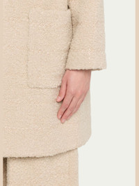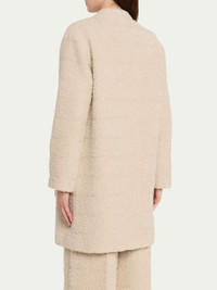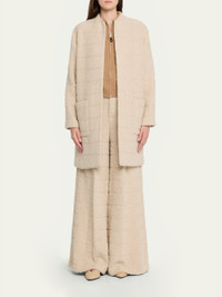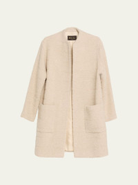 From the 100th anniversary capsule collection, the "Steph" collarless coat by Loro Piana is crafted of a mohair-wool boucle Round neckline; single-breasted front Long sleeves Hip patch pockets Straight fit Hem falls below the hip Mohair/virgin wool Lining: Silk Dry clean Made in Italy Online Inquiries: BGS21_BB0PJ| Store Inquiries: #5400282