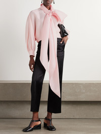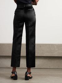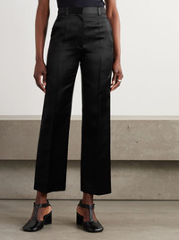 Loro Piana was made for power dressing – it's known for quiet luxury, after all. These high-waisted pants are cut from duchesse silk-satin and have slightly cropped cuffs, best styled with slingbacks or kitten heels. Details & Care - Black duchesse silk-satin - Concealed hook, button and zip fastening at front - 100% silk; button: 100% horn (Buffalo) - Dry clean