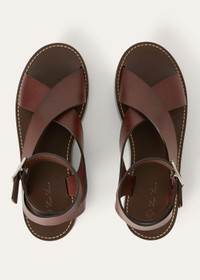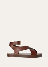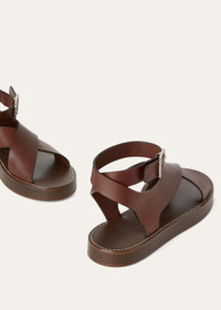 Meticulously crafted in calfskin, the Sumie sandal has two crossed straps that wrap elegantly around the ankle. The lustrous finish lends a sophisticated sheen, while the exceptionally soft feel ensures both style and comfort with every step. Complement your summer ensemble with this impeccable footwear piece. Product details Ankle buckle fastening Composition: Upper: 100% Calfskin Sole: 100% Leather Product code: FAO1816
