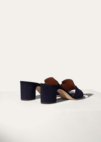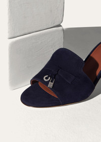 Suede sandal with a band featuring Loro Piana My Charms, framed in tonal stitching. Refined and elegant, perfect both for city dressing and resort holidays. Product details 5.5 cm heel Treated with a water-repellent, stain-resistant finish Lightly cushioned footbed Buffed leather sole with kummel colour stripe Composition: 100% suede goatskin Trim: lining 100% kidskin Made in Italy Product code: FAI5579